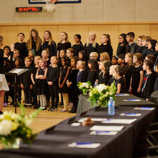 Tuesday's ceremony included a territorial welcome and song by Ronald Francis-Modeste of Mathxwí First Nation. Ardaas Sukdev Singh from Khalsa Diwan Society Abbotsford and Pastor Mitch Borrows from Hill City Church brought blessings to the event. Students from Irene Kelleher Totí:ltawtxw's Choir, led by Amanda Schoepp, performed "A Wish for Peace" and also led the room through the singing of O Canada.